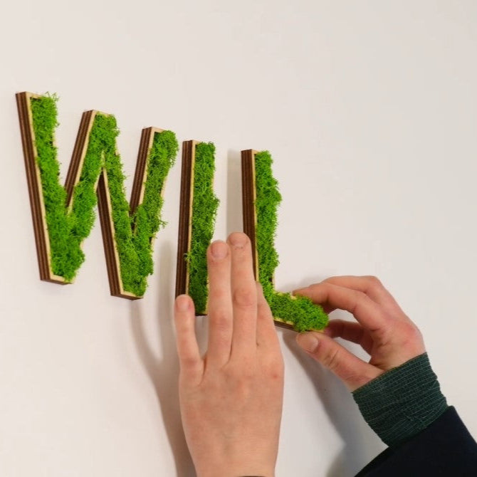 Bringe lebendige Natur in Namen, Zahlen und Zeichen – als wertige Deko, die sofort wirkt und dauerhaft Freude macht. Jedes Element wird sorgfältig von Hand gefertigt: echtes, konserviertes Moos auf präziser Holzbasis. Sanft im Ausdruck, stark in der Wirkung.